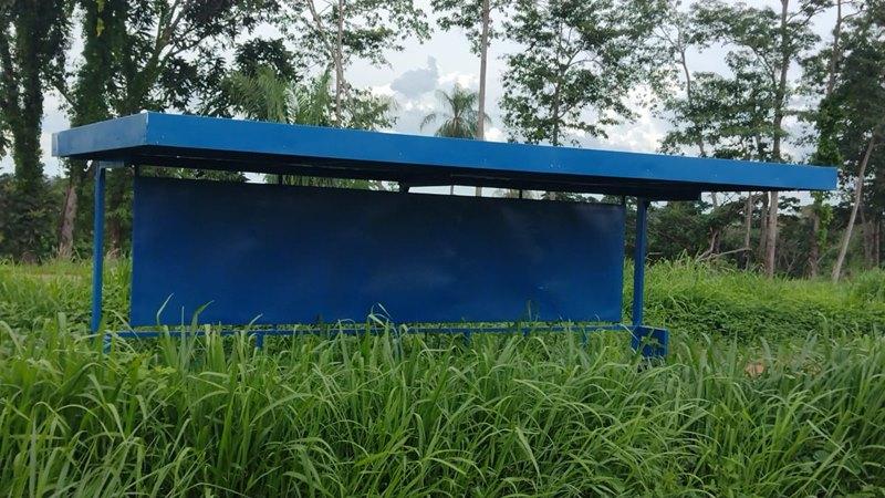 O ponto de ônibus que ilustra esta matéria foi fotografado no dia 22 de dezembro. O artefato construído serve para atender moradores do Bairro Agua Boa e estudantes que aguardam o transporte, no período das aulas, entre outros.