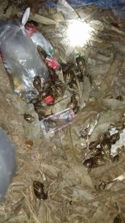 A foto que você vê retrata apenas um fragmento da infestação do caramujo africano, que não tem inimigo natural por aqui. Segundo moradores com quem a reportagem conversou, os moluscos surgem de todos os lugares infestando quintais e, agora, toma conta até mesmo das imediações do poço artesiano d’ onde a água é bombeada para estação de tratamento e, serve dezenas de moradores que vão buscar a água para consumo próprio.
