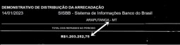 Por – Sebastião Amorim – Levantamento realizado junto ao Portal do Banco do Brasil, feito neste sábado (14/01), revelou que o município de Araputanga recebeu, nos primeiros dez dias de 2023 R$1.203.252,75 (um milhão, duzentos e três mil, duzentos e cinquenta e dois reais).