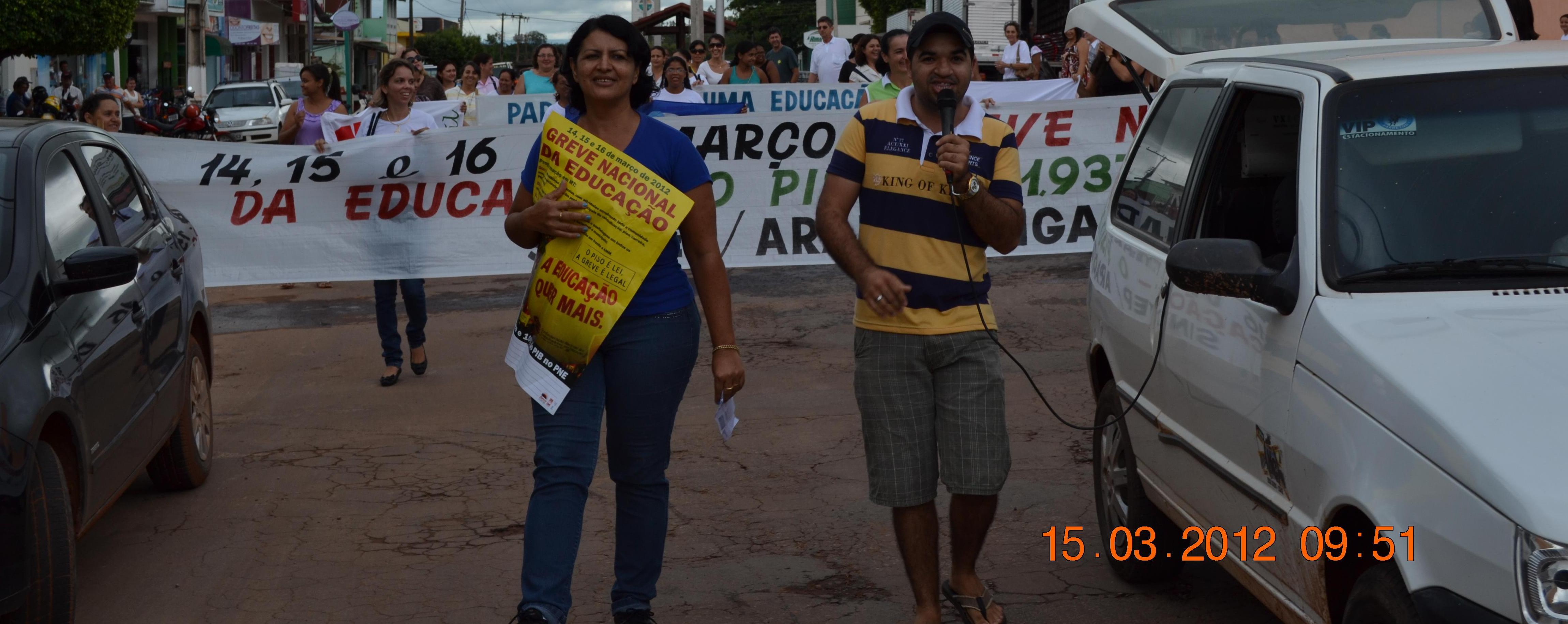 Na manhã de hoje (15/03), por volta das 8:h15min os profissionais da Educação de Araputanga se reuniram em frente a Escola Joaquim Augusto da Costa Marques para passeata pelas principais ruas da cidade.