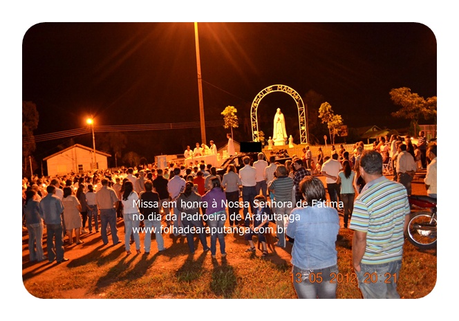 Dia 13 de maio é o dia da Padroeira de Araputanga. Os Cristãos araputanguenses promoveram desde a noite do sábado, dia 12, no santuário mariano de Araputanga, adoração a Jesus Sacramentado em honra de Nossa Senhora de Fátima.