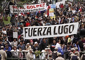 ASSUNÇÃO - O Senado paraguaio cassou nesta sexta-feira, 22, o mandato do presidente Fernando Lugo, após negar um pedido do mandatário, que solicitou 18 dias para a preparação dos argumentos de defesa do julgamento político iniciado na manhã de hoje, por suposto mau desempenho de suas funções. Cerca de cinco mil manifestantes protestavam em frente ao Congresso do Paraguai contra a votação do impeachment de Lugo. O Senado aprovou a validade das cinco acusações contra Lugo, com 39 votos a favor e apenas quatro contra. Os advogados do mandatário se retiraram do plenário, irritados com o voto. O vice-presidente Federico Franco assumirá a presidência do Paraguai até as eleições, que acontecerão em nove meses.