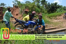 Flagramos o momento em que o primeiro motoqueiro foi socorrido, quando caía dentro do rio com sua moto. É assim que tem sido o dia-a-dia, dos homens e mulheres que moram na região das Botas.   Sofrendo essa parcela da população está indignada com a demora no conserto da ponte do Córrego Água Limpa. A estrada vicinal estadual tem diversas pontes, todas de madeira.