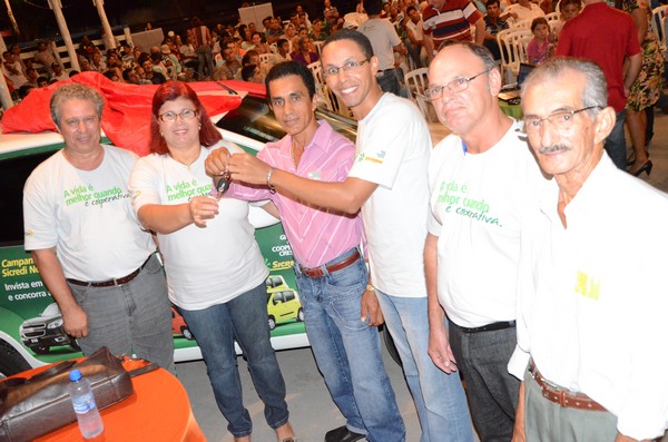 A premiação refere-se ao sorteio da Campanha de Capitalização 2012-2013. Na foto: Eduardo Francisco Duarte Ferreira, Vice-Presidente da Sicredi Noroeste MT, Marlene de Souza Santos, Presidente da Sicredi Noroeste MT, associado de Figueirópolis D’Oeste Osvaldo de Azevedo Pereira, Gerente do Sicredi em Figueirópolis José Fernando Fabiano, Diretor Secretário da Sicredi Noroeste MT José Weliton Ramalho Araujo e Conselheiro de Administração Balbino Cardoso da Silva.