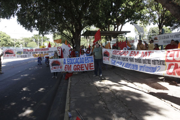 Os trabalhadores da educação de Mato Grosso seguiram em passeata, hoje (22) de manhã, até o Palácio Paiaguás, onde está localizado o gabinete do governador Silval Barbosa, para uma vigília. Durante todo o dia, com pausa apenas para o almoço, a categoria permanece no local em protesto contra o posicionamento do governo do Estado em relação à greve, deflagrada no dia 06 de junho.