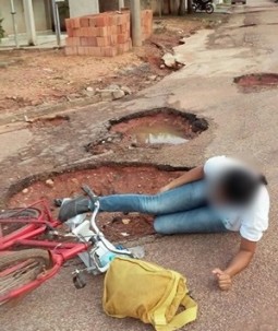 Uma mulher caiu, na manhã de hoje, 30, nas “crateras” formadas na Rua Antenor Mamedes, próximo ao Córrego do Bacuri e, cerca de trezentos metros da sede da Prefeitura Municipal.