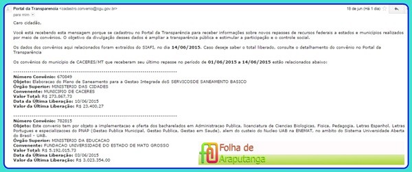 A informação chegou à Folha de Araputanga através da Controladoria Geral da União (CGu), no dia 18 de junho.