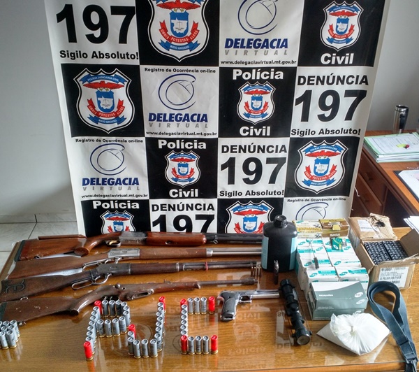 Um homem acusado de homicídio na cidade de Mirassol D'Oeste (300 km a Oeste) teve o mandado de prisão cumprido pela Polícia Judiciária Civil, na segunda-feira (26.10), no município. Além da prisão do suspeito, a operação “Tiro Certo”, resultou na apreensão de 5 armas de fogo e várias munições de diferentes calibres.