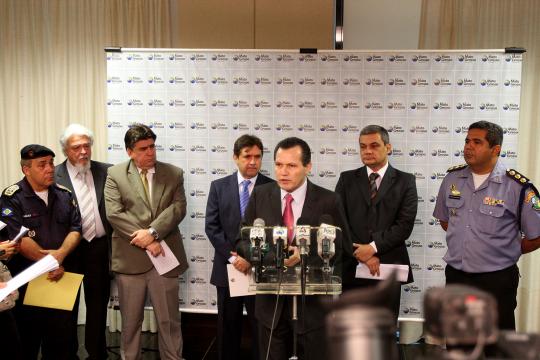 Em coletiva à imprensa, realizada nesta sexta-feira (02.09), o governador de Mato Grosso, Silval Barbosa, acompanhado da cúpula da Segurança Pública, anunciou as medidas tomadas pelo Estado em relação à greve dos Investigadores e Escrivães da Polícia Judiciária Civil, que se estende há mais de 60 dias. Uma das medidas anunciadas é a convocação dos servidores para o retorno ao trabalho, em um prazo de 24 horas, sob pena de corte salarial em 100% de todos os grevistas. “Chegamos ao limite da possibilidade de concessão de aumento salarial”, disse Silval Barbosa.
