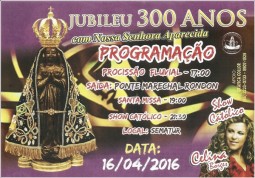 O Jubileu tricentenário tem um toque especial para os Cristãos, pois, a Imagem que está percorrendo Dioceses de todo Brasil, chegará a Cáceres amanhã (16), com extensa programação espiritual e festiva por ocasião da recepção da Imagem da Padroeira do Brasil.
