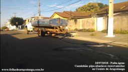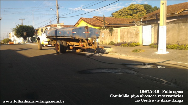 Talvez ninguém possa afirmar que a liminar judicial expedida em julho de 2015 não esteja sendo cumprida; na manhã de hoje (16), um caminhão pipa abastecia reservatórios à Rua Arthur Francisco Xavier, próximo ao Banco do Brasil, prova cabal que apesar da troca de equipamento para distribuição via bombeamento, a gestão pública enfrenta problemas velados para restabelecer o fornecimento regular da água. Na região Central de Araputanga, o pipa passou a atuar ontem (15).