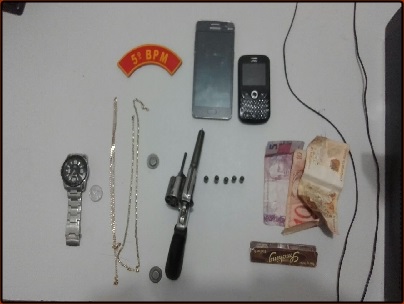 A ação mobilizou 10 policiais e diversas viaturas. A casa foi cercada e os ladrões acabaram se rendendo. Com o trio a PM apreendeu um revolver calibre 32 com cinco munições intactas.