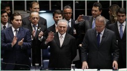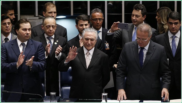 Após aprovação do impeachment de Dilma Rousseff nesta quarta-feira (31), Michel Temer foi empossado definitivamente na Presidência da República. Temer foi recebido na Chapelaria do Congresso pelo presidente da Câmara dos Deputados, Rodrigo Maia, pelo presidente do Senado Federal, Renan Calheiros e pelo presidente do Supremo Tribunal Federal, Ricardo Lewandowski.