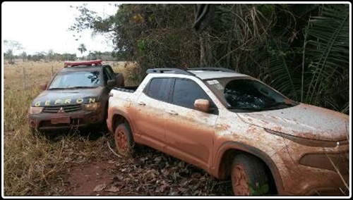 A equipe volante do Gefron, realizavam o patrulhamento na rodovia MT 473, quando avistaram abandonado dentro da mata o veículo Fiat Toro de cor branca.