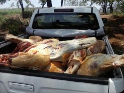 Chegando lá, a equipe encontrou cinco reses (animais que são abatidos e cuja carne é usada na alimentação humana) recém-abatidas. A carne, dividida em 10 peças traseiras e 10 dianteiras, estava em uma câmara fria, pronta para comercialização. Também havia outras peças de carne armazenadas em um freezer.