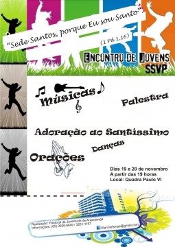 É com muita satisfação que nós jovens da PJ (Pastoral da Juventude de Araputanga) convidamos vocês para participarem de momentos de fé, alegria, amor e uniãono XX ENCONTRÃO DE JOVENS DE ARAPUTANGA.