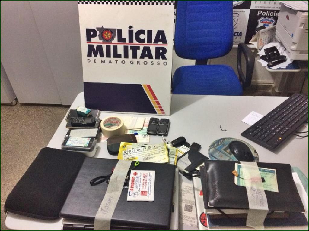 Dentro da carteira do suspeito Junior havia duas folhas de cheque do Banco Sicredi, sendo um com valor R$ 14.500,00 e outro com valor de R$ 13.000,00 e diversos cartões de crédito em nome de terceiros. Os suspeitos foram detidos e encaminhados para a Delegacia da Polícia Cikvil.