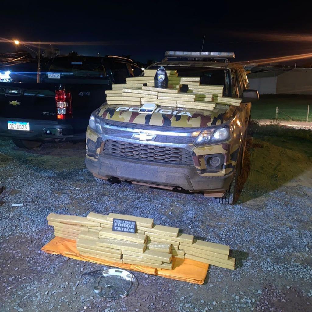 Questionados sobre onde estaria o restante dos entorpecentes, os suspeitos informaram a localização das drogas escondidas em uma matagal próximo da estrada da Ponte de Ferro. A Força Tática deslocou para a região informada e encontrou mais 50 tabletes dos mesmos entorpecentes, totalizando 85 tabletes apreendidos, somando 102 quilos de drogas.