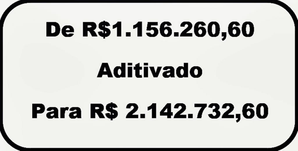 Em termos percentuais o aditivo é de 85,31% sobre o valor inicial de R$1.156.260,60 alterando o contrato celebrado em outubro de 2022 para R$ 2.142.732,60. O novo valor estabelece alterações na parceria considerando: