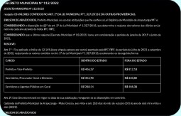 A tabela abaixo, consta do Decreto 142/2022 assinada pelo Prefeito, confira:
