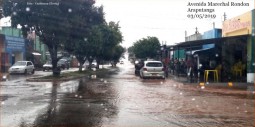 ARAPUTANGA – Água da chuva transbordou sobre Avenida, na região central da Cidade