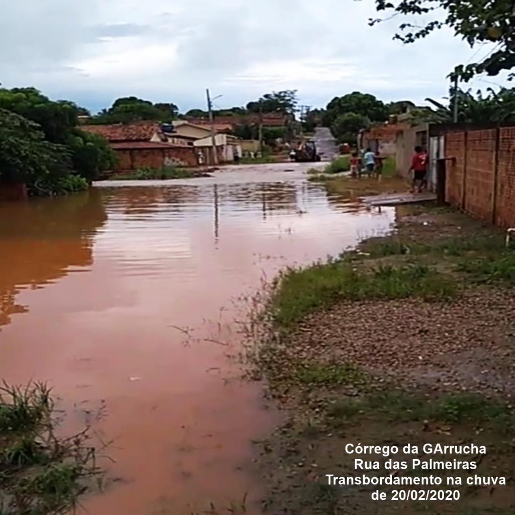 O tempo decorrido durante a precipitação foi suficiente para elevar o nível do Córrego da Garrucha, no Bairro Santo Antônio e, fazer a água transbordar para Ruas e, invadir ou isolar residências nas imediações do Córrego, à Rua das Palmeiras.