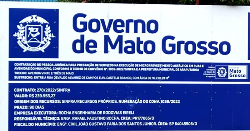 O investimento na obra é de R$239.953,27 e de acordo com informações públicas, o serviço foi contratado por tomada de preço.