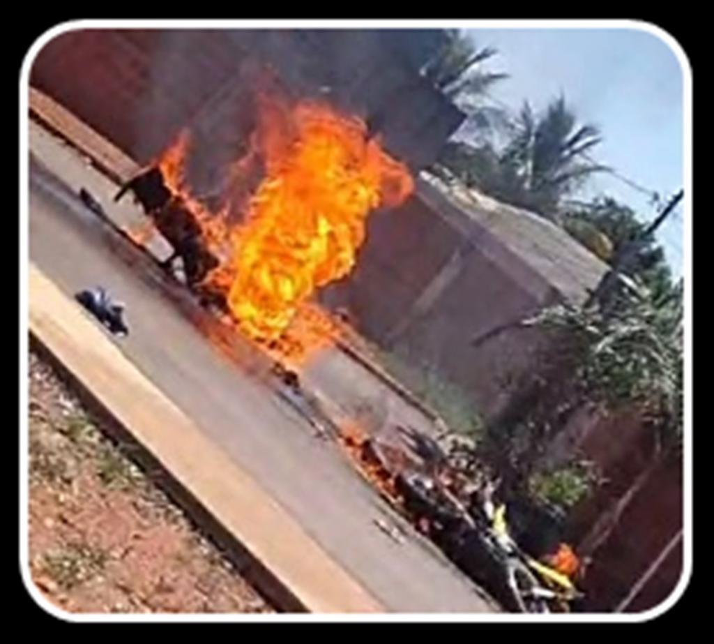 As primeiras informações vindas de populares, indicaram que o fato se deu no Bairro Cidade Alta, próximo à quadra de esportes.  Uma das motocicletas pegou fogo, restando o veículo carbonizado e deixando o condutor com queimaduras e outra pessoa com fratura na perna.
