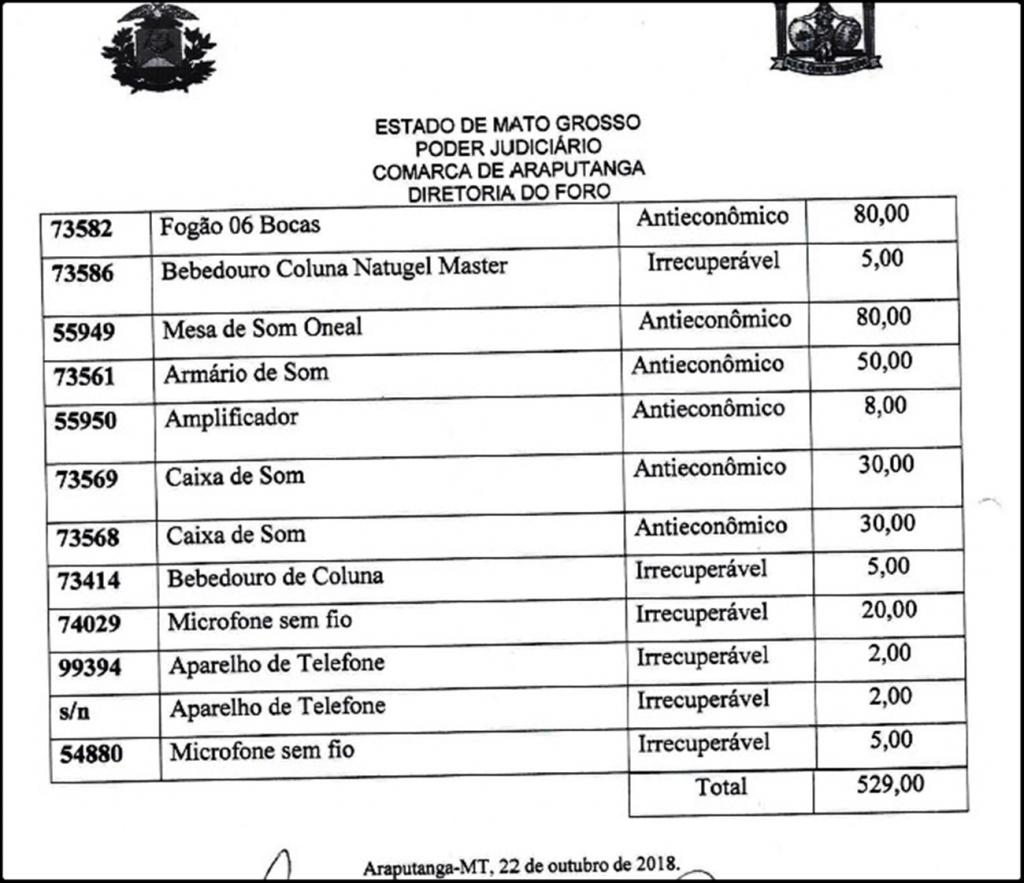 ARAPUTANGA – Edital divulga lista de bens públicos do Poder Judiciário, para doação