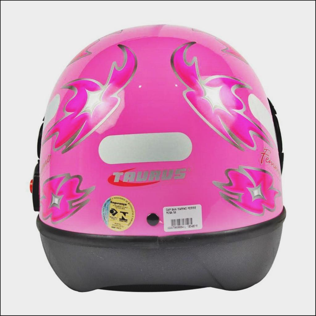 Trata-se de um capacete novo marca San Marino tamanho 58 cor rosa-claro. O valor do equipamento (capacete) novo, gira em torno de R$115,00