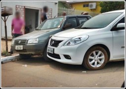 Os condutores (uma mulher e um homem) são de Araputanga; o Nissan sofreu avaria no para-lama, na altura do pneu direito. Só houve danos materiais.