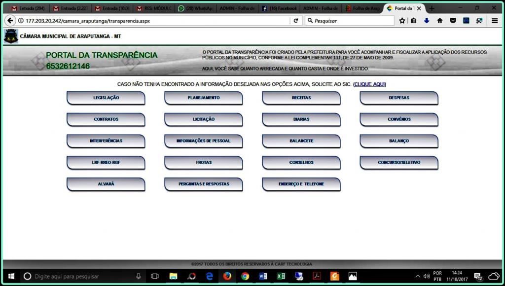 No entanto, o pedido feito em 25 de setembro, pela Folha de Araputanga, permanece ativo e aguardando resposta; são diversas informações que precisam ser reunidas de forma individualizada e outras que, não constam do site mas, seguramente pode ser do interesse do nosso leitor.