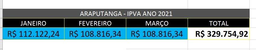ARAPUTANGA – Queda superior a 40% na receita com IPVA no primeiro trimestre/2021