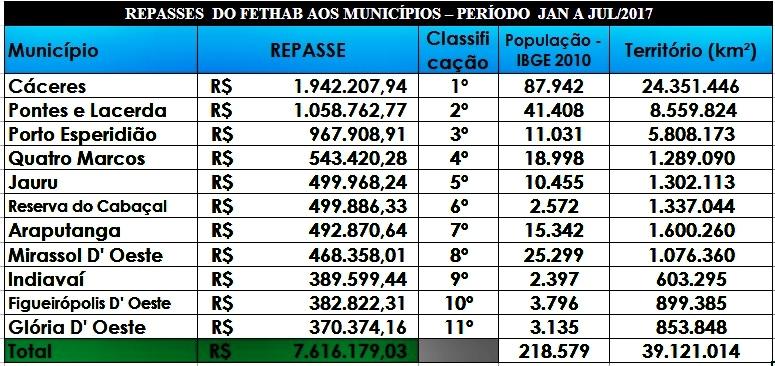 A Redação da Folha fez levantamento junto à publicação Oficial do Governo de Mato Grosso, e constatou que junto os município de Cáceres, Pontes e Lacerda, Mirassol D’ Oeste, S.J.IV Marcos, Araputanga, Porto Esperidião, Jauru, Indiavaí, Figueirópolis, Glória D’ Oeste e, Reserva do Cabaçal, receberam do Fundo Estadual de Transporte e Habitação - FETHAB R$ 7.616.179,03 (Sete Milhões, Seiscentos e Dezesseis Mil, Cento e Setenta e Nove Reais).