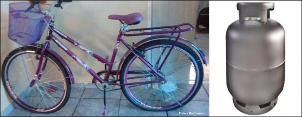Do interior da residência foram furtados um botijão de gás vazio e, uma bicicleta marca Cairu, modelo feminino, cores azul e branco, com garupa de inox.