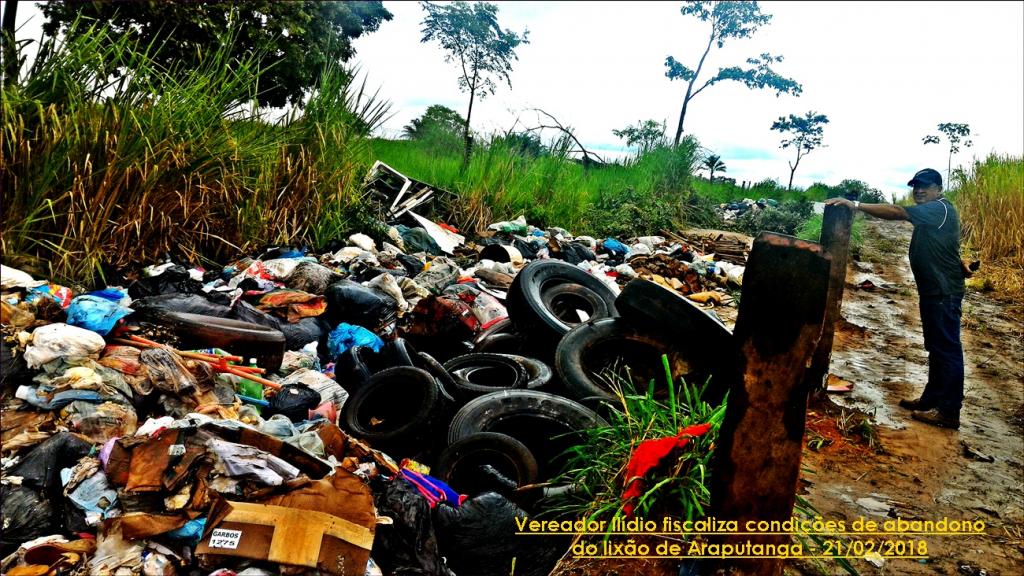 Recebendo diversas denúncias das más condições do local, por volta de meio dia de hoje, o vereador Ilídio da Silva Neto, na condição de fiscal eleito pelo povo, compareceu ao lixão, e constatou de perto as denúncias que ouvira:  o lixão se derrama e já está sendo jogado na estrada, tomando conta de tudo, a céu aberto.