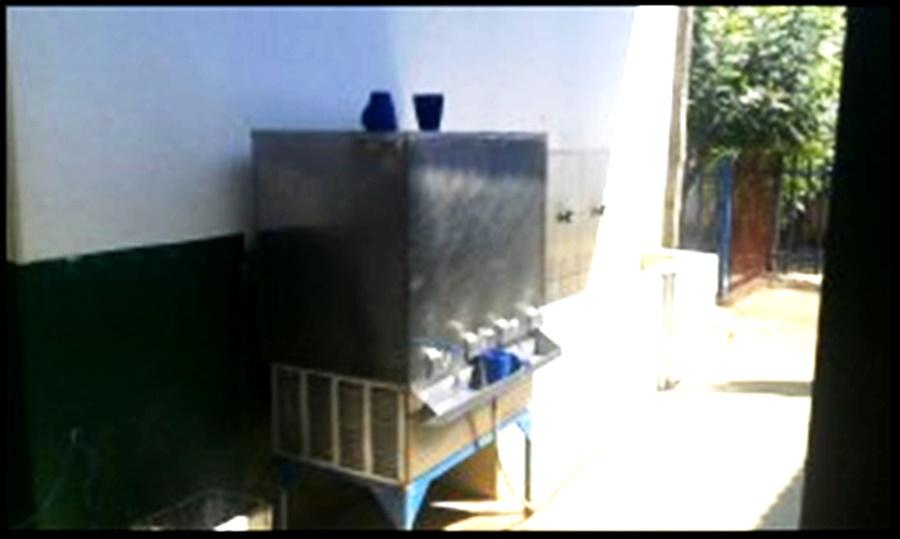 O bebedouro da escola está instalado do lado externo da cozinha e por não haver nenhuma proteção, fica fácil abri-lo e colocar qualquer substancia em seu interior.