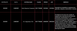 Já o contrato 104/2019 prevê locação de equipamento laboratorial automatizado (analisador hematológico) e com fornecimento de insumos, consumíveis e acessórios (reagentes, calibradores, sangue controle, cubetas, agulhas, papel e fita para impressora, etc) necessários a realização dos testes / exames pelo laboratório municipal de análises clínicas, em atendimento à demanda da secretaria municipal de saúde.