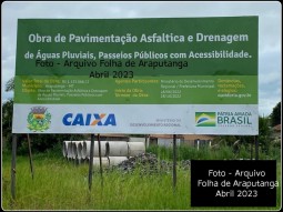 Em 19 de abril de 2023, a Folha de Araputanga publicou a reportagem “Há 300 dias, Araputanga recebeu recurso para asfalto, drenagem e acessibilidade”