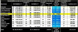 As transferências constitucionais destinadas aos Municípios, através do Banco do Brasil, caíram no mês de novembro/17. Na lista de cidades acompanhadas mensalmente pela Folha de Araputanga, só percebeu incremento nos valores transferidos, Mirassol D’ Oeste que cresceu 6,46% saindo de R$2,84 milhões em outubro  para R$3,02 milhões em novembro/17.