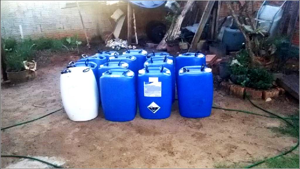 No quintal da residência de J.C.X.S. foi localizado um tambor de 50 com o produto, e outros 13 tambores de 50 litros vazios, que seriam utilizados para vender RR2C para futuros compradores. Informou que vendeu parte do produto para outras três pessoas com referência na cidade, fornecendo inclusive o nome.