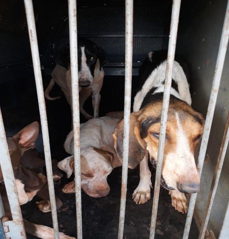 Na residência havia seis cães: dois pinscher, dois pit bulls e dois da raça americano. Ficou constatado por avaliação preliminar de veterinário que os recebeu levados pela Polícia Militar (Canilfron) que todos estavam cheios de carrapatos e apresentavam quadro clínico de erliquiose – popularmente conhecida como doença do carrapato -, um apresentava suspeita de insuficiência renal e uma pit bull fêmea estava com mioclonia de cinomose e tumor venéreo transmissível (TVT).