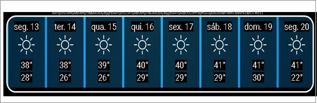 Por – Sebastião Amorim - Se a previsão se confirmar, a próxima semana será como a que termina hoje... temperaturas altas, sem previsão de chuvas e o calor deve ultrapassar a casa dos quarenta graus (de novo).