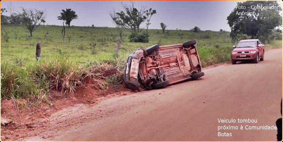 por - Sebastião Amorim - A condutora do veículo Fiat Uno Way placas de Araputanga OBB 5605 perdeu o controle da direção e teve o veículo tombado, próximo à Comunidade da Bota, no município de Araputanga.