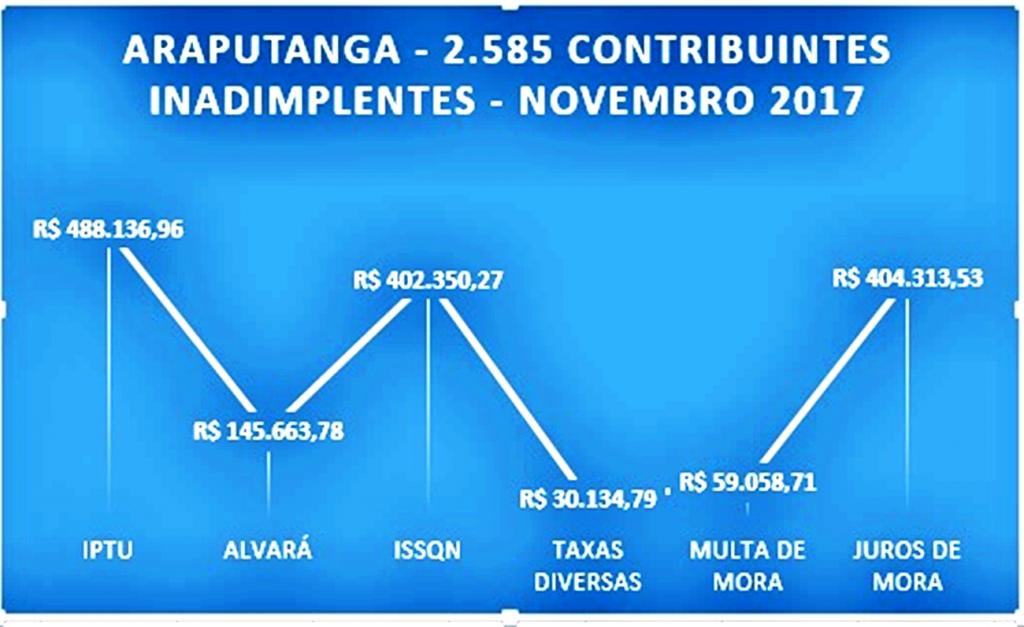 A soma dos valores devidos aos cofres da Prefeitura Municipal de Araputanga, forma montante financeiro significativo que poderia alavancar diversos serviços em favor da população.