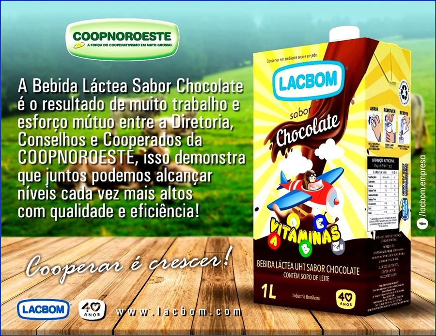 Por: Assessoria - A Coopnoroeste/Lacbom acaba de lançar mais um produto que fará parte do seu portfólio, o achocolatado LACBOM® de 1 litro. Trata-se de uma versão que utiliza embalagem Tetra Pak.