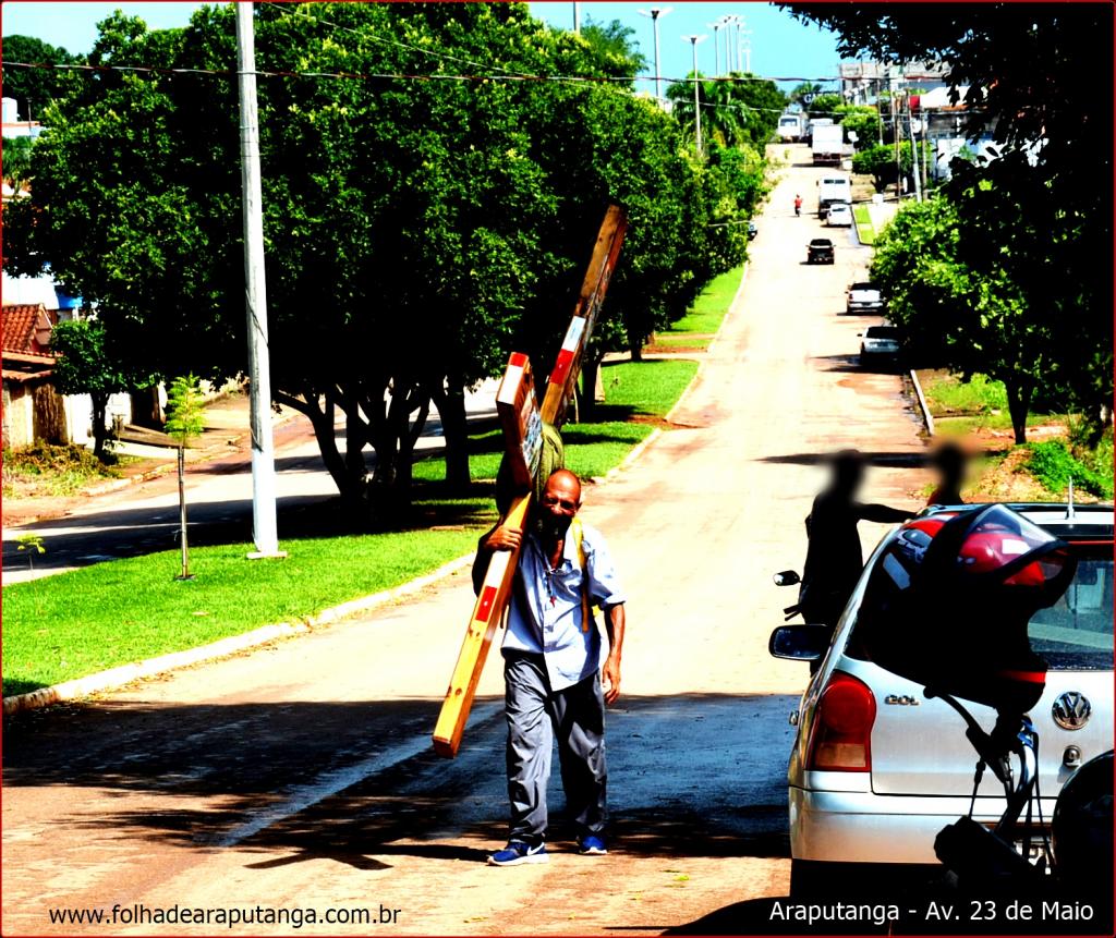 Diversas pessoas telefonaram à Redação da Folha de Araputanga, na manhã de hoje (10), informando que um homem caminhava na MT-175 carregando uma Cruz.
