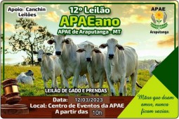 DIA 12 DE MARÇO - APAE-ARA realizará o 12º leilão