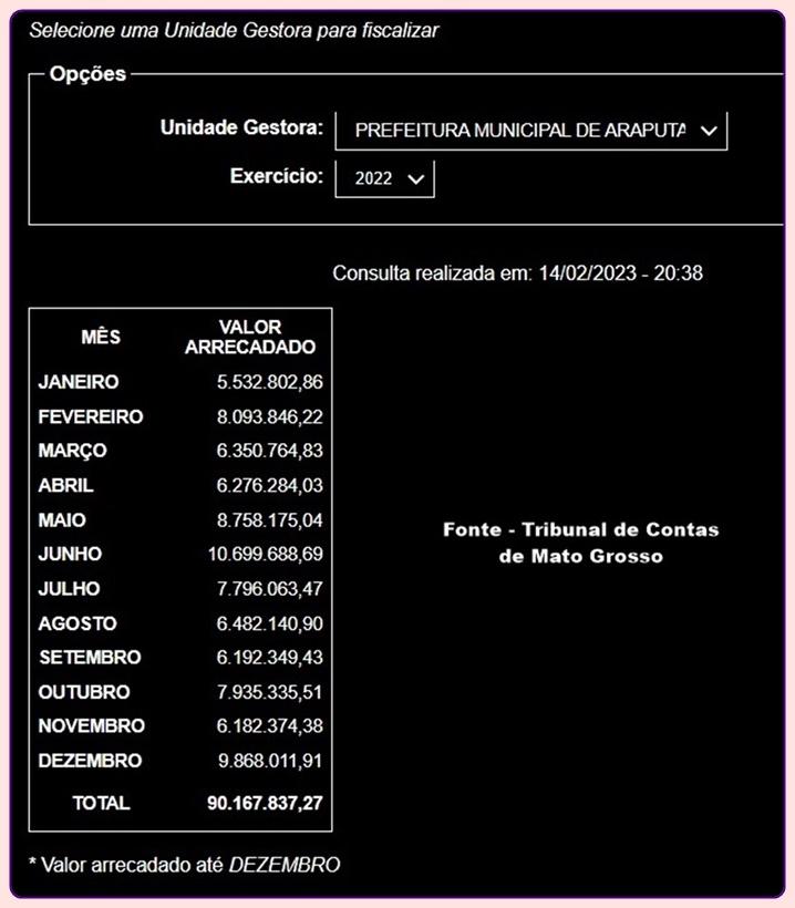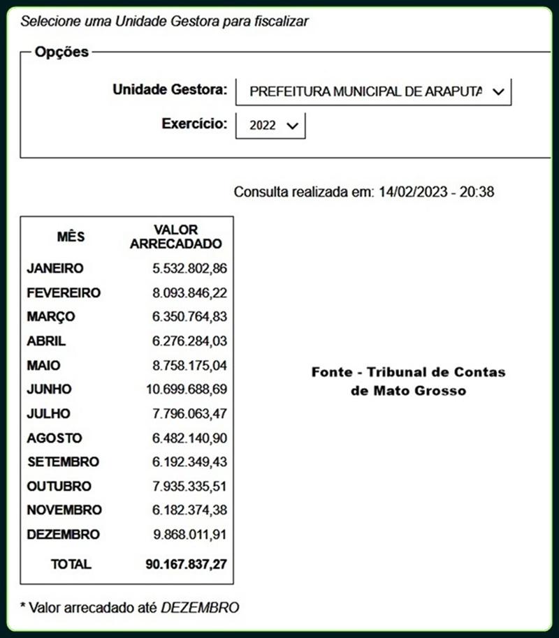 DINHEIRO – Arrecadação de Araputanga ultrapassou noventa milhões de reais em 2022