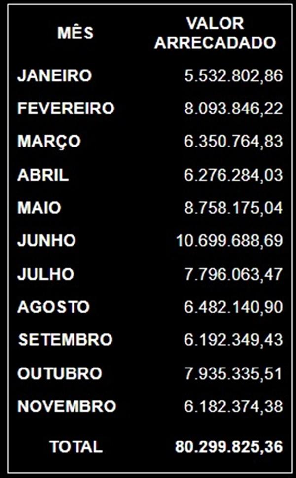 Entre janeiro a novembro de 2021 a média da arrecadação somava R$5.446.215,03 - nos onze meses já decorridos em 2022 a média mensal subiu para incríveis R$7.299.984,12.